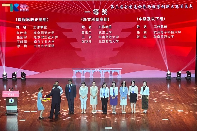 8月18日至22日,由教育部高等教育司指導、中國高等教育學會主辦的第三屆全國高校教師教學創新大賽決賽在浙江大學舉辦。我校外國語學院任利教師團隊(成員包括:王一安、黃巍、熊穎哲)經過激烈角逐脫穎而出,榮獲全國一等獎,實現了學校教師教學競賽新突破。