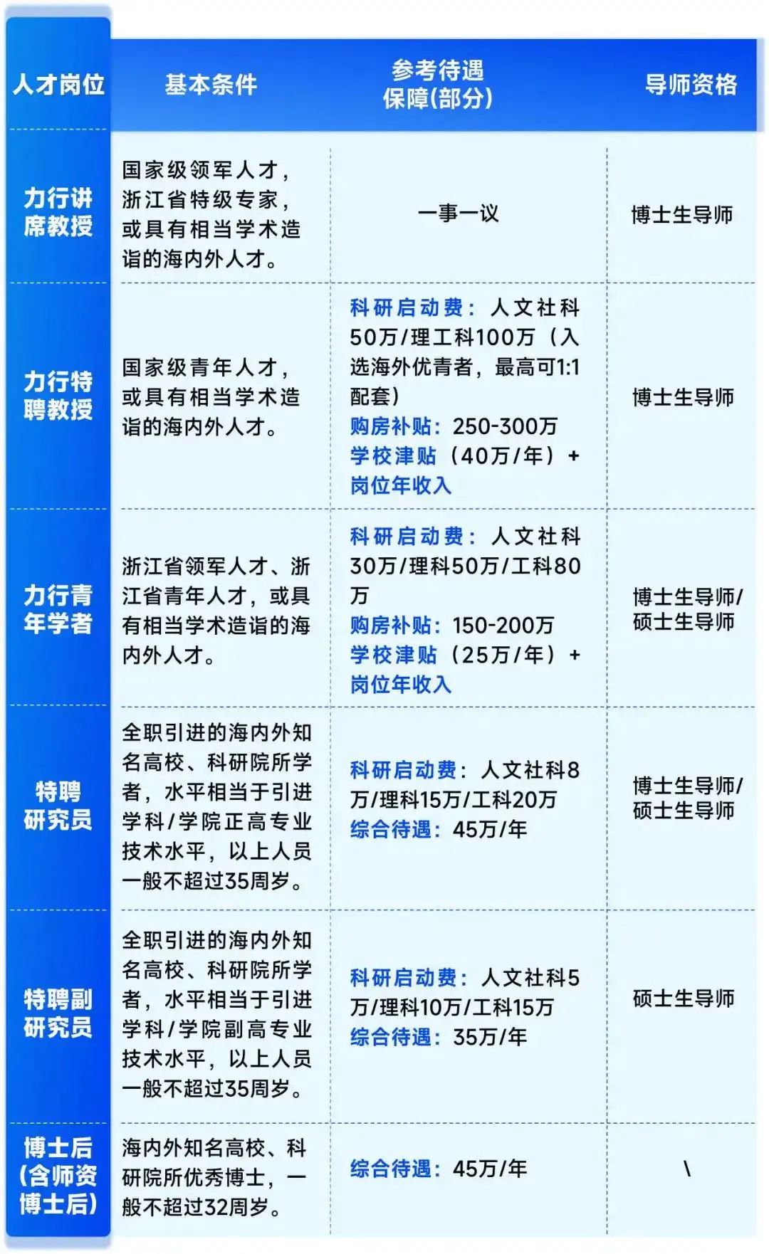 引才崗位包括力行*教授、力行特聘教授、力行青年學(xué)者、特聘研究員、特聘副研究員、博士后等。學(xué)校為引進(jìn)的高層次人才提供豐厚的薪酬和福利,提供科研啟動(dòng)費(fèi)、住房及購(gòu)房補(bǔ)助、協(xié)調(diào)子女入學(xué)、安置家屬工作等保障。力行*教授待遇面議,團(tuán)隊(duì)引進(jìn)或特殊人才待遇可“一事一議”。