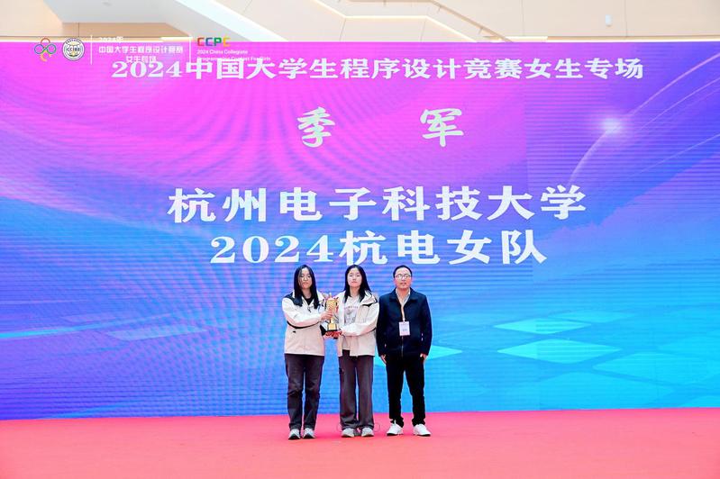 本次CCPC女生專場賽共有來自全國100余所高校的170支隊伍報名參賽。經過激烈角逐,最終共有17支隊伍獲得本年度CCPC女生專場比賽的金獎。其中,來自南方科技大學的“南方科技大學-皮爾森”隊獲得冠軍,香港中文大學(深圳)的“WTYTO”隊獲得亞軍,我校由卓越學院2023級俞越、2022級陳姿穎組成的“2024杭電女隊”成功解出全部13道題目中的11題,獲得季軍,這也是我校在這項賽事中取得的歷史最好成績。