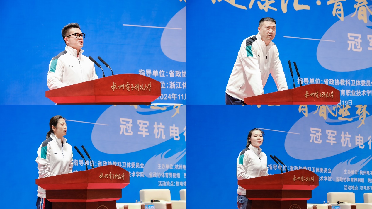 活動中,世界武術錦標賽冠軍、亞運會冠軍、全運會兩屆蟬聯冠軍毛婭琦,2006年體操世錦賽團體冠軍何寧、杭州馬拉松三屆國內選手冠軍,無錫、西安馬拉松女子冠軍陳林明、巴黎殘奧會羽毛球混合雙打SH6級冠軍,杭州亞殘運會羽毛球男子雙打SH6級冠軍林乃利也一同上臺與觀眾進行互動訪談。他們用質樸的語言和師生們分享了奪冠背后的艱辛與挑戰,他們不懈奮斗的堅持感染著全場師生,展現了體育精神的真正內涵。