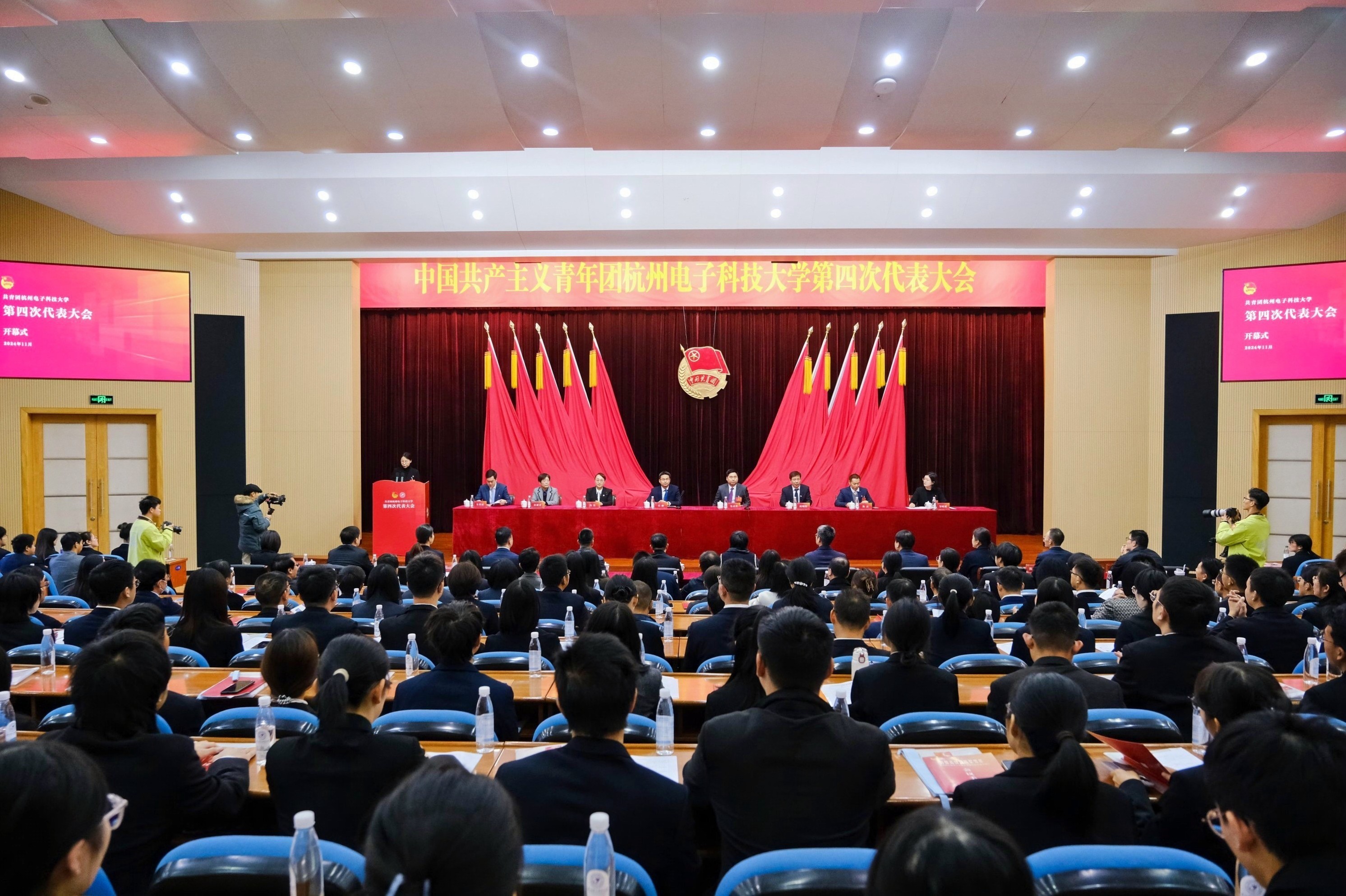 大會主題:高舉中國特色社會主義偉大旗幟,以習近平新時代中國特色社會主義思想為指導,全面貫徹落實黨的二十大和二十屆歷次全會精神,深入學習貫徹習近平總書記關于青年工作的重要思想,認真落實學校第四次黨代會工作部署,團結帶領全校團員青年心懷“國之大者”,力擔強國重任,在浙江勇擔先行者、譜寫新篇章中,全力唱響“我在窗口寫青春”最強音,在面向“國家所需、未來所向、杭電所能”中,以實際行動展現杭電青年擔當,為全面建成電子信息特色鮮明的高水平研究型大學貢獻青春力量。