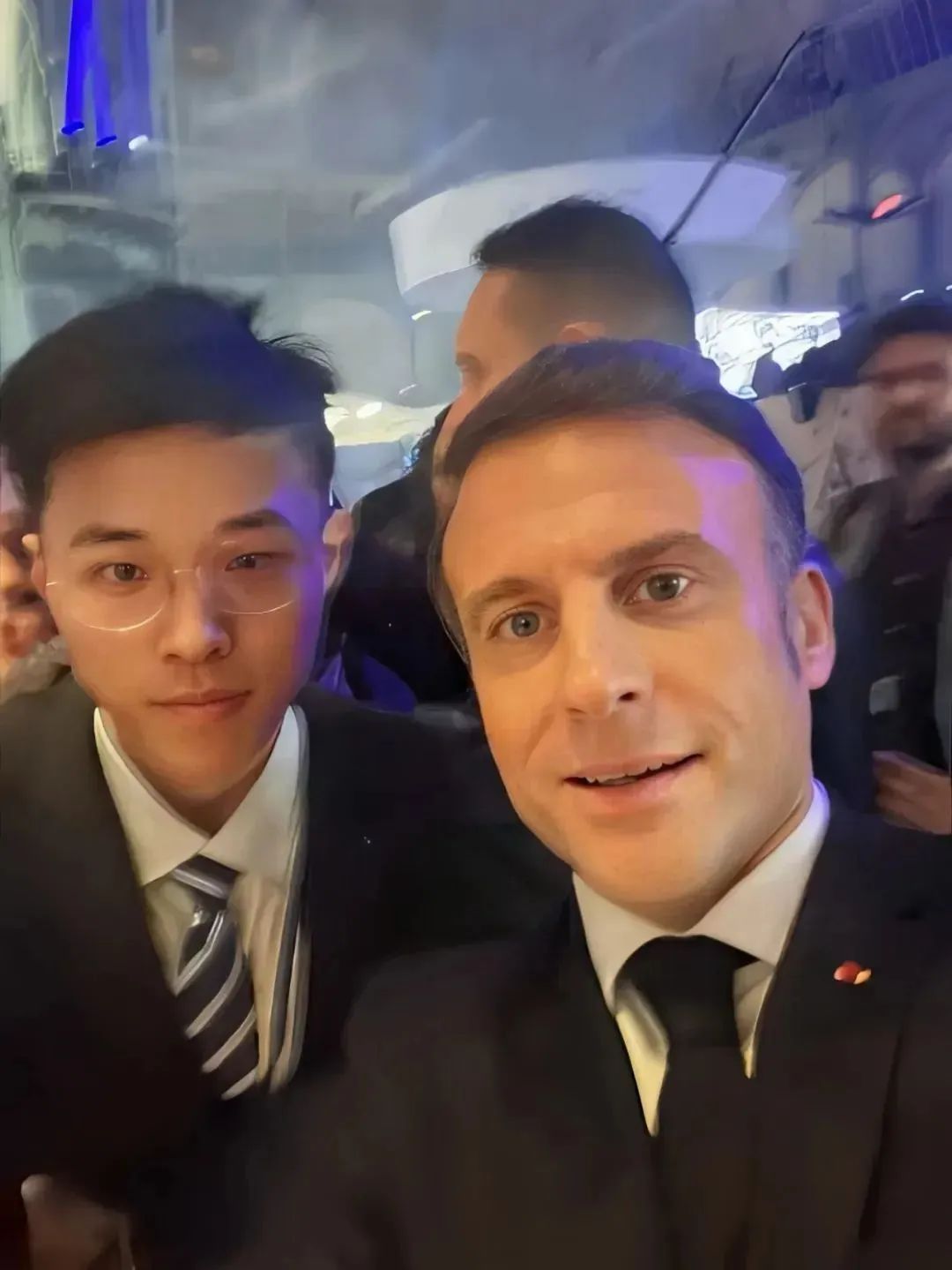 閉幕式上,馬克龍總統(tǒng)發(fā)表閉幕演講,他強(qiáng)調(diào)了法國(guó)及歐盟在AI發(fā)展的決心,包括政府加大投資、吸引外資、建設(shè)數(shù)據(jù)中心和能源網(wǎng)絡(luò),以及呼吁建立一個(gè)可信賴的框架,以在避免過度監(jiān)管的同時(shí),確保技術(shù)的安全和可靠應(yīng)用。他還提到法國(guó)希望加強(qiáng)與中國(guó)的合作,共同推動(dòng)全球AI發(fā)展。黃一馬同學(xué)有幸親歷現(xiàn)場(chǎng),并與馬克龍總統(tǒng)交流、合影留念。