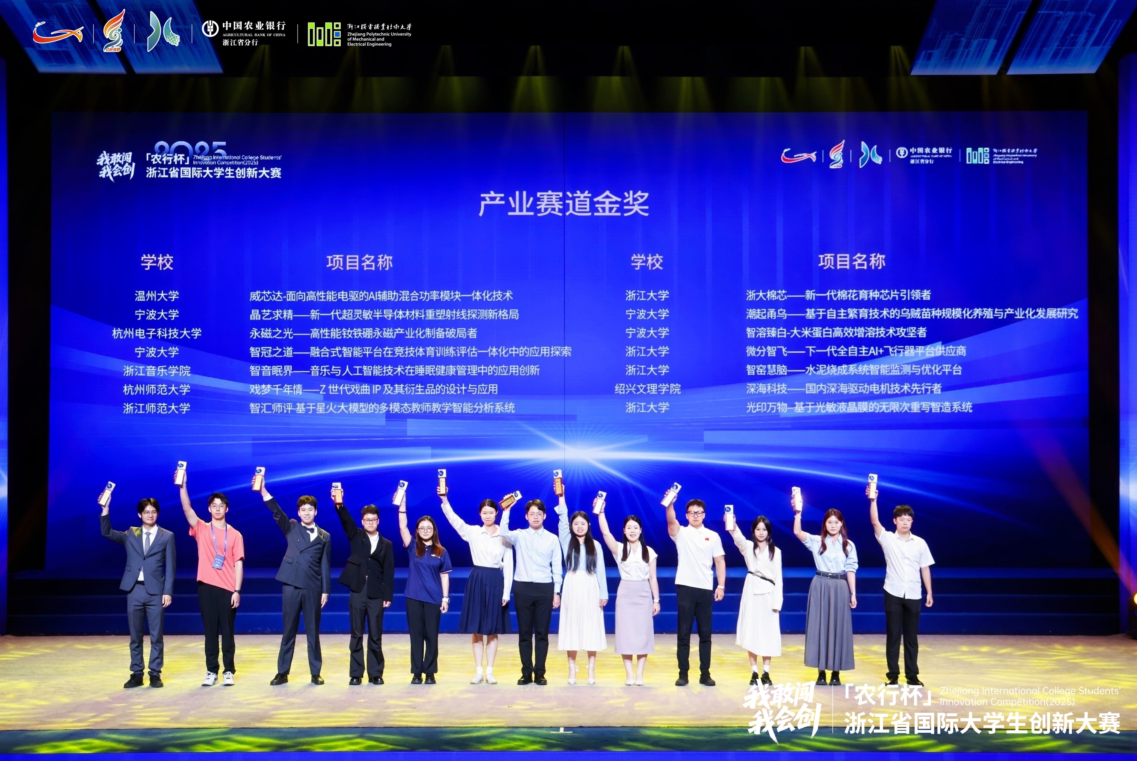 7月11日-7月13日,為期三天的 “農行杯”浙江省國際大學生創新大賽(2025)在浙江機電職業技術大學圓滿落幕。我校19支參賽隊伍進入省決賽,經過激烈角逐,斬獲9金10銀的優異成績!金獎項目數位列省屬高校第三,創省賽歷史最好成績,連續三年刷新我校省賽歷史紀錄。