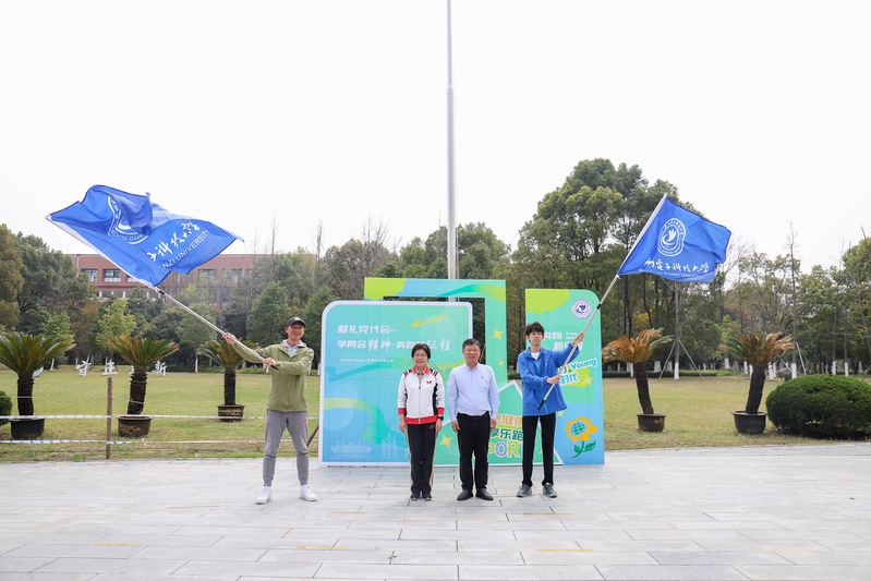 錢波、任蔚青、周青分別在青山湖及下沙校區向教職工和學生代表授旗,旗幟飄揚,象征健康與活力的傳遞,體育強國精神的弘揚。