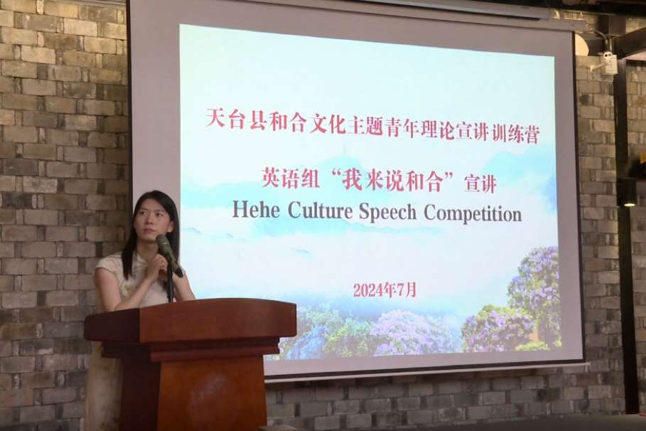 7月6日,“我來說和合”宣講活動在浙江天臺縣和合人間文化園內舉辦,天臺縣和合文化宣講團英語組的成員們,用流利的英語向來自杭州電子科技大學的留學生代表們進行了精彩的宣講。