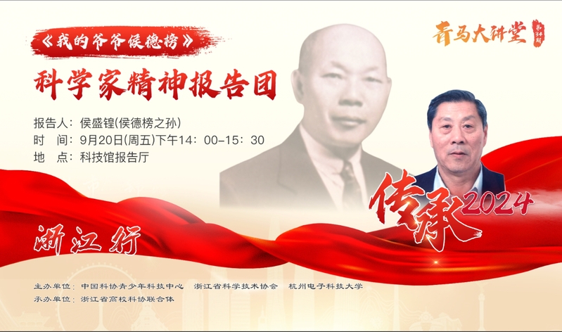 青馬大講堂|“傳承2024”科學家精神報告會暨浙江省高校開學第一講《我的爺爺侯德榜》——中國科學家精神宣講團成員、侯德榜長孫侯盛锽教授走進杭電