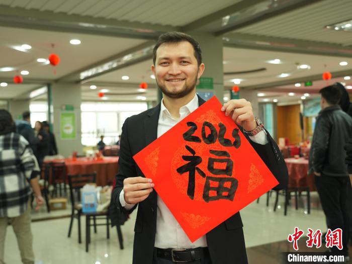 1月23日,米爾扎耶夫參加杭州電子科技大學(xué)舉辦的中外師生新春游園會。 姚振羽 攝