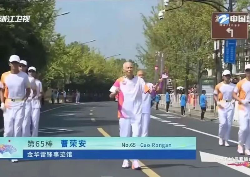2023年9月17日,曹榮安作為杭州第十九屆亞運會年齡最大的火炬手,在金華市區跑完第65棒。他對記者說,“擔任火炬手對我是一種鼓勵,我很享受”,“傳遞亞運精神和弘揚雷鋒精神一樣是社會和時代的需要,是中國人良好精神生活的展現?!彼M柚鷣嗊\火炬傳遞,將雷鋒精神和環保理念傳遞給更多人。