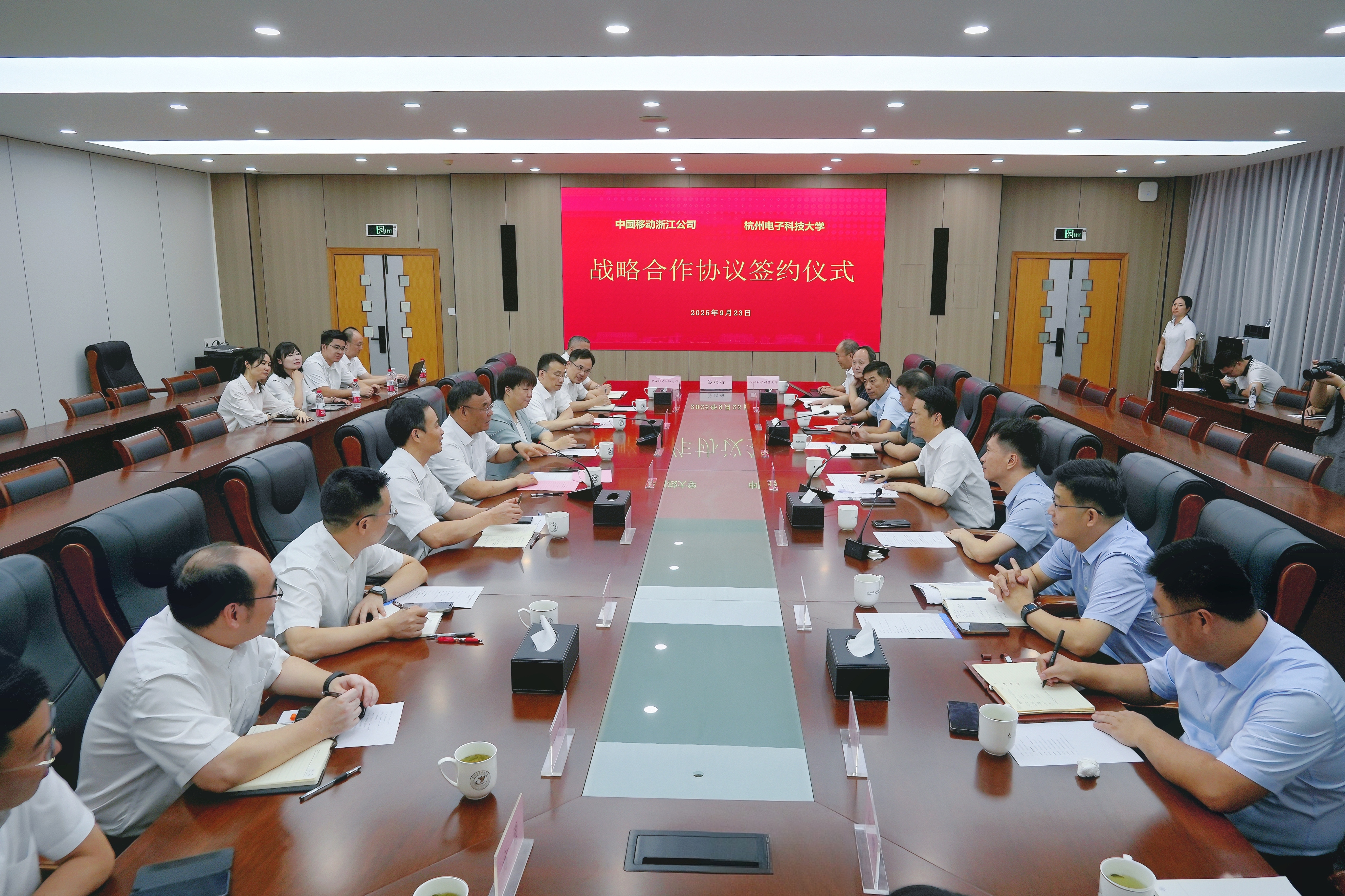 9月23日,杭州電子科技大學—浙江移動戰略合作簽約儀式在杭州電子科技大學下沙校區舉行。校長陳積明出席儀式,儀式由副校長顏成鋼主持。