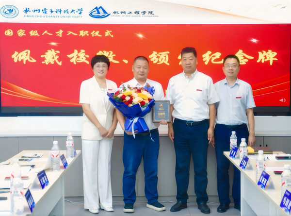 儀式上,馬國進為林綠高教授佩戴校徽并頒發紀念牌。他代表學校對林教授加盟表示熱烈歡迎,指出機械工程學院正處于沖擊高水平學科建設、服務制造強國戰略的關鍵時期,迫切需要林教授這樣的領軍人才引領學科發展、凝聚團隊力量。他希望林教授能將企業界豐富的實踐經驗和最前沿的技術成果帶入課堂與實驗室,深度參與人才培養全過程,共同培育出更符合產業與企業需求的高素質創新人才,最終實現學校與個人、教學與產業的互利共贏,在杭電的平臺上再創佳績。