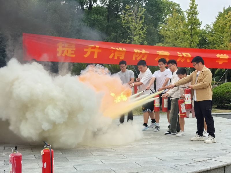 在實操演練環節,安全保衛部模擬火災現場,組織新生開展應急疏散演練,引導大家掌握低姿彎腰、捂住口鼻、沿安全通道有序撤離等疏散技巧。同時,工作人員現場細致演示了滅火器“提、拔、握、壓” 的操作步驟以及消防水帶的連接、展開方法,并邀請參訓新生代表上前實操。新生們手持滅火器對準 “火點” 精準噴射,在親身體驗中熟悉滅火器材使用要領,真正實現 “學用結合”。