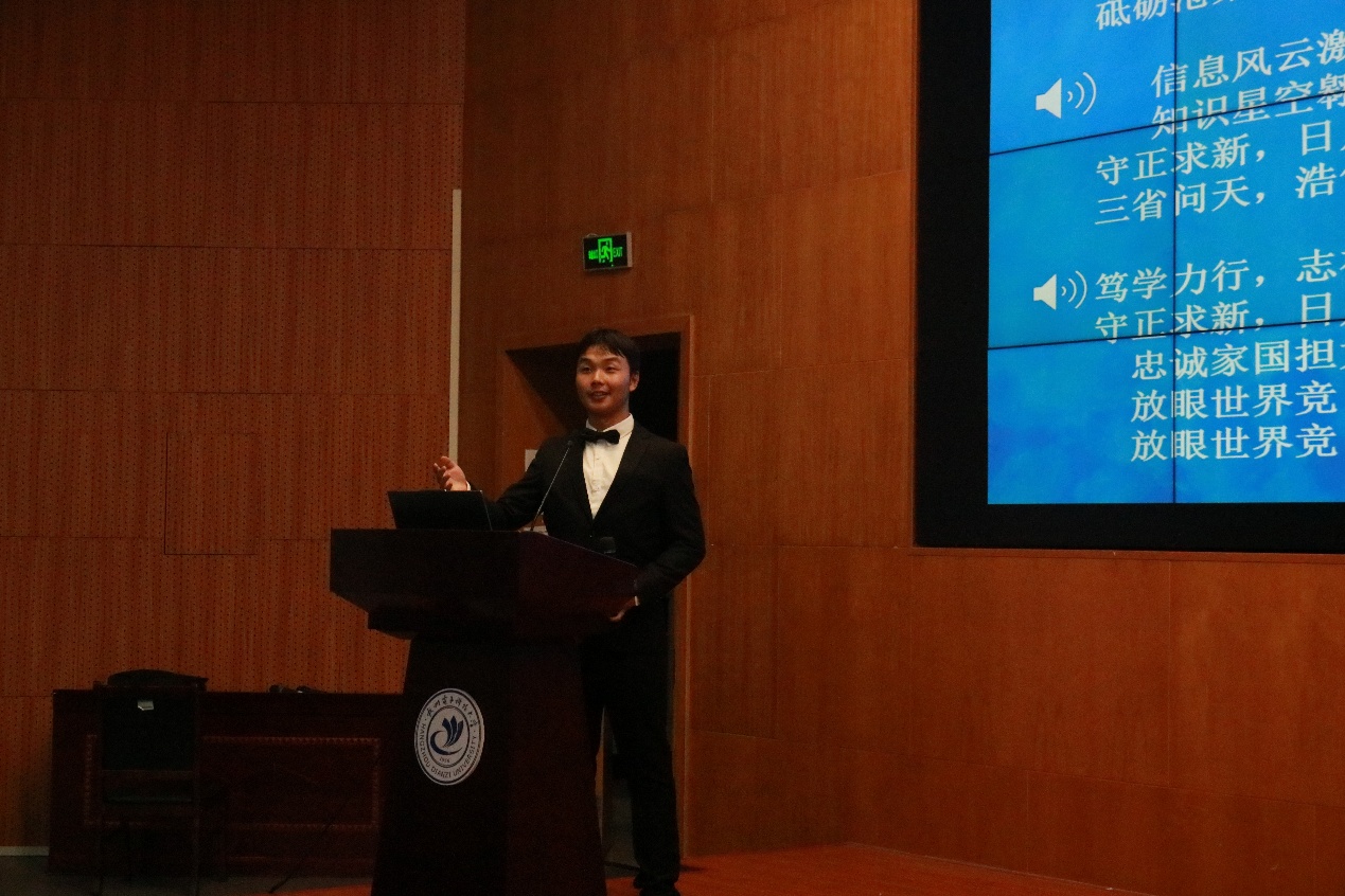校歌教唱環節中,四季男聲合唱團帶領新生逐字研讀校歌歌詞,引導大家領悟“篤學力行守正求新”的校訓精神;隨后通過打拍子、分句哼唱等互動方式,幫助新生攻克節奏把控與音準校準等難點。從最初的生澀生疏,到后來的流暢進行,教學現場數百名新生歌聲整齊劃一、激情昂揚,校歌的旋律久久回蕩。