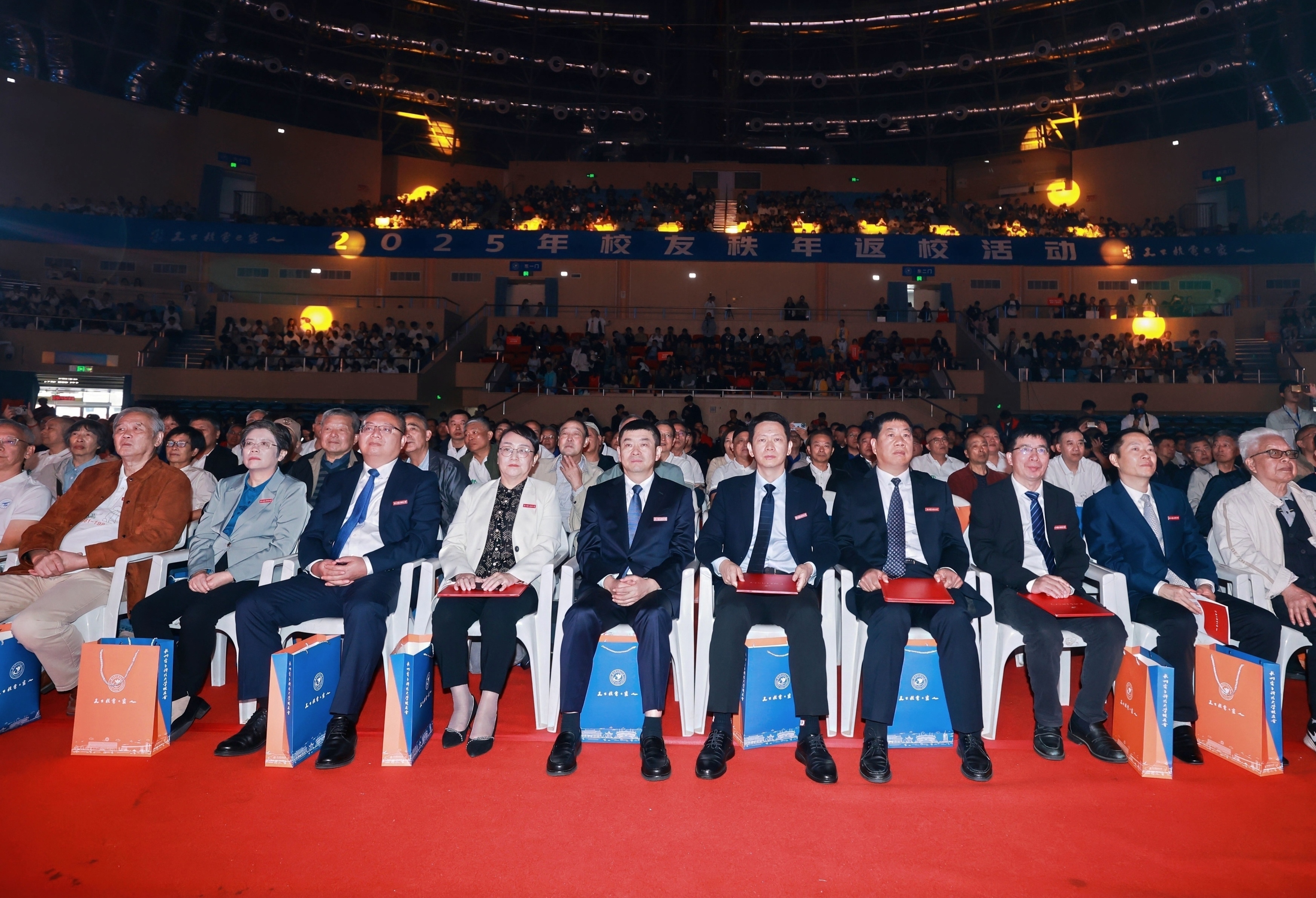 10月25日,杭州電子科技大學下沙校區體育館內洋溢著濃濃的懷舊情誼與重逢喜悅。畢業50周年、40周年、30周年、20周年、10周年的1200余名校友跨越山海,重返母校熱土,參加2025年校友秩年返校紀念大會。校黨委書記王堯祥、校長陳積明等在家校領導班子成員,各學院、機關部處負責人,校友們當年的恩師,以及各學院師生代表齊聚一堂,共同見證這場意義深遠的相聚。