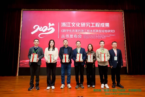 論壇上舉行了浙江文化研究工程成果《數字化改革的浙江樣本和典型經驗研究》叢書發布會。項目負責人周青教授簡要介紹了叢書編寫背景、編寫歷程與主要內容,并對支持叢書編寫的各位領導、專家、企業家等表達了真摯的感謝。浙江省社會科學界聯合會二級巡視員劉東女士、浙江科學技術出版社宋東總編輯、叢書編寫指導專家陳疇鏞教授、項目負責人周青教授以及叢書作者等共同啟動叢書發布會。項目負責人周青教授向浙江大學、中共浙江省委黨校、杭州電子科技大學、浙江理工大學、浙江工商大學、浙江外國語學院等圖書館贈送叢書。