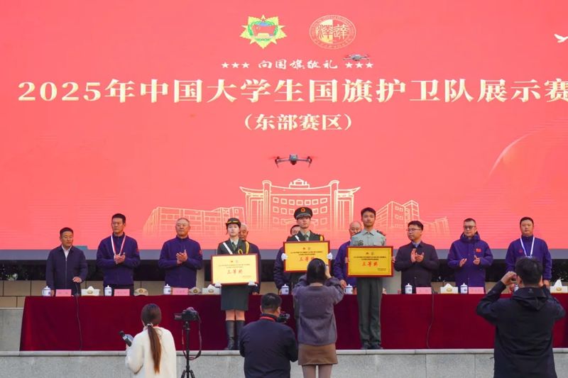 近日,學校國旗護衛隊在2025年中國大學生國旗護衛隊展示賽(東部賽區)中,和來自江蘇、浙江、山東等省市30多所高校的千余名師生同場競技,憑借過硬的軍事素養、嚴明的作風紀律和昂揚的精神面貌,以混編組升旗儀式展示第六名,分隊隊列動作展示第六名,總成績第五名,成功斬獲全國高校國旗護衛隊展示賽總決賽入場券。