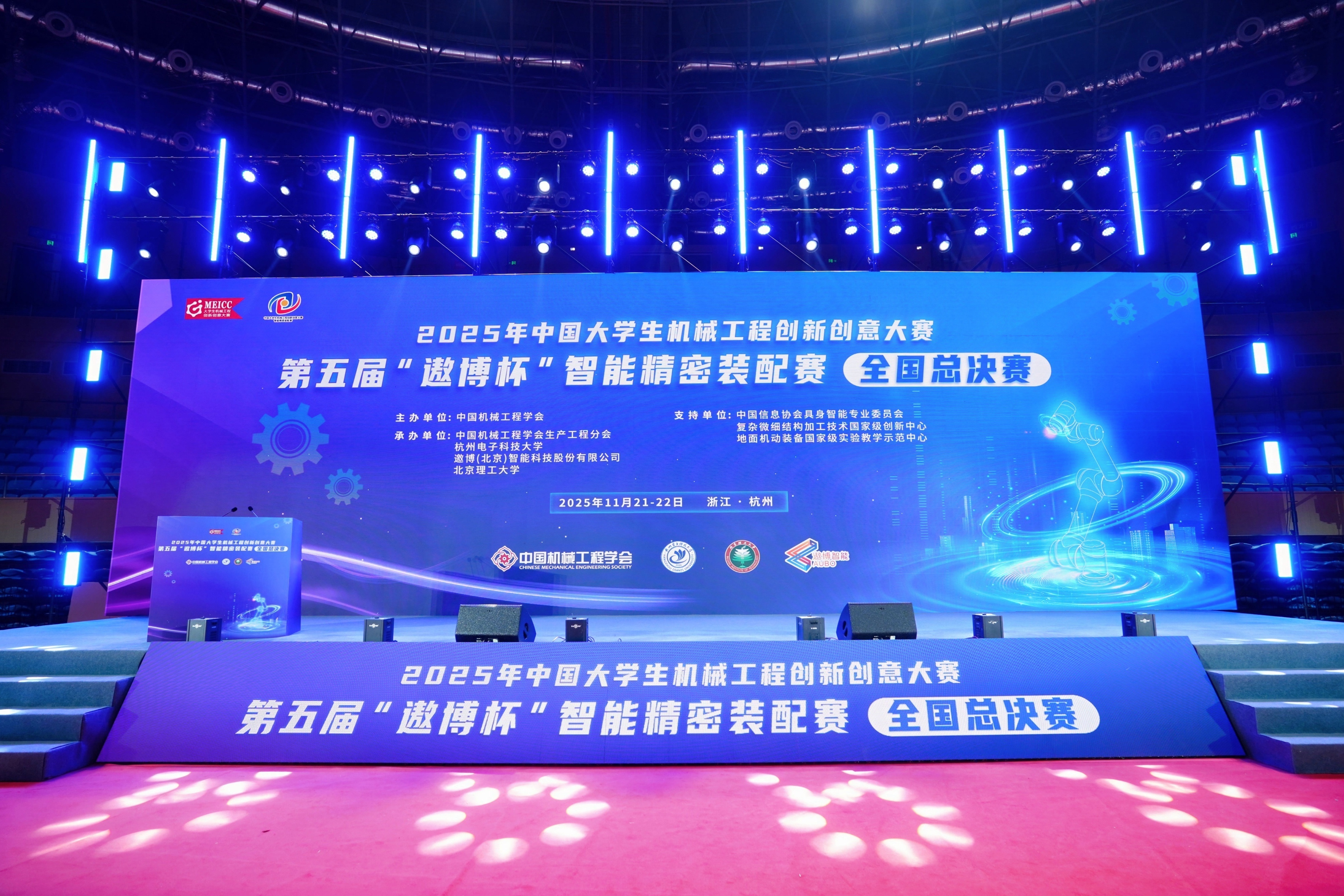 11月21日-22日,2025年中國大學(xué)生機(jī)械工程創(chuàng)新創(chuàng)意大賽第五屆“遨博杯”智能精密裝配賽全國總決賽在我校體育館圓滿落幕。本次大賽由中國機(jī)械工程學(xué)會(huì)主辦,中國機(jī)械工程學(xué)會(huì)生產(chǎn)分會(huì)、杭州電子科技大學(xué)、北京理工大學(xué)、遨博(北京)智能科技股份有限公司承辦,中國信息協(xié)會(huì)具身智能專業(yè)委員會(huì)、復(fù)雜微細(xì)結(jié)構(gòu)加工技術(shù)國家級(jí)創(chuàng)新中心、地面機(jī)動(dòng)裝備國家級(jí)實(shí)驗(yàn)教學(xué)示范中心、智能制造技術(shù)國家級(jí)實(shí)驗(yàn)教學(xué)示范中心提供支持。大賽以“培養(yǎng)創(chuàng)意思維,開拓創(chuàng)造能力,推動(dòng)產(chǎn)業(yè)升級(jí),發(fā)掘創(chuàng)新人才”為宗旨,致力于搭建一個(gè)高水平的智能裝配技術(shù)交流與展示平臺(tái)。